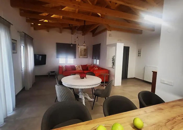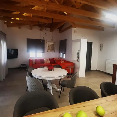 Vila Vila Φιλόξενο Σπίτι Στο Βόλο je umístěna 1 km od St. Nicholas Metropolitan Cathedral, je 1-ložnicové ubytování s terasou. Pokoje v této vile jsou vybaveny psacím stolem, místností na posezení a TV s plochou obrazovkou se satelitními kanály.